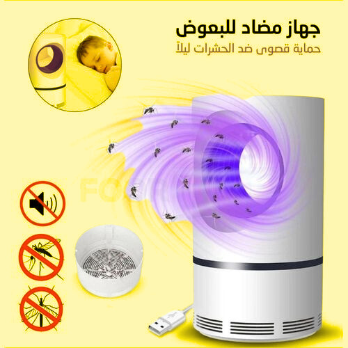 اجعل بيئتك خالية من البعوض والحشرات الطائرة بطريقة ذكية وغير مُزعجة: هذا الجهاز يجمع بين تقنية الضوء UV LED، شفط الهواء، وطاقة USB ليقدم حلاً فعالاً وآمناً للاستخدام الداخلي (والخارجي الخفيف).